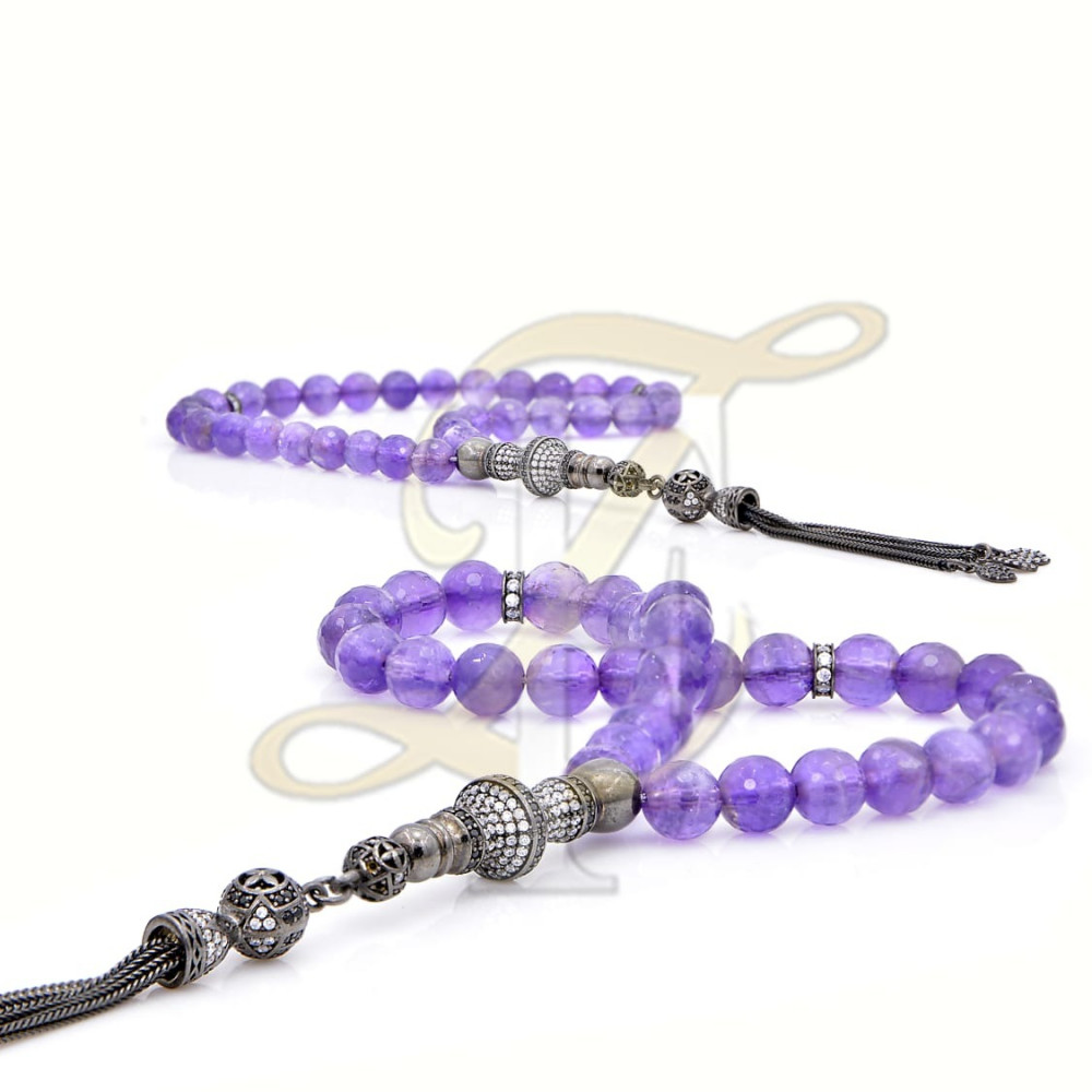 مسباح امتيست (جمشت)مع كركوشة فضه عيار 925 مطعمه بالزركونعدد الخرز : 33ابعاد الخرز : 7.8 mmالوزن الاجمالي : 32.5